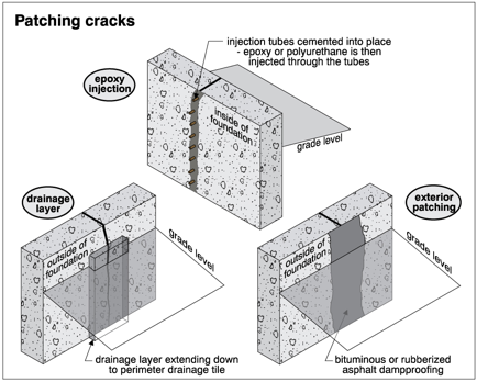In the vast majority of cases, basement leakage is not significant from a structural point of view and can be controlled relatively inexpensively, as discussed above. However, the presence of foundation cracks, damaged perimeter drainage tiles, a high water table or underground streams may call for more extreme corrective measures. These measures are used when chronic flooding occurs.