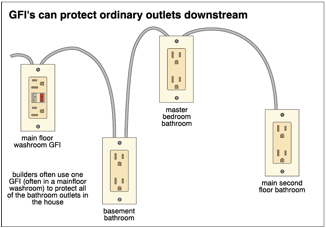 In Canada, GFCI's are now required by Code for outdoor outlets, bathroom outlets and whirlpool outlets. Electrical systems for swimming pools are also GFCI protected. In the United States, kitchen outlets within six feet of the sink must also be GFCI protected.